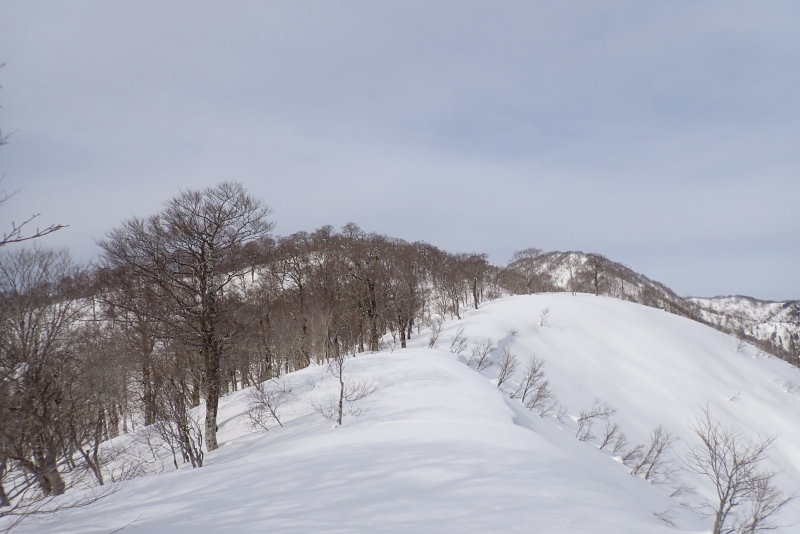 当然のごとく登山道はなく、積雪期限定の山だ。健脚の登山者なら南稜を経て経ヶ岳を目指す行程の通過点にしか