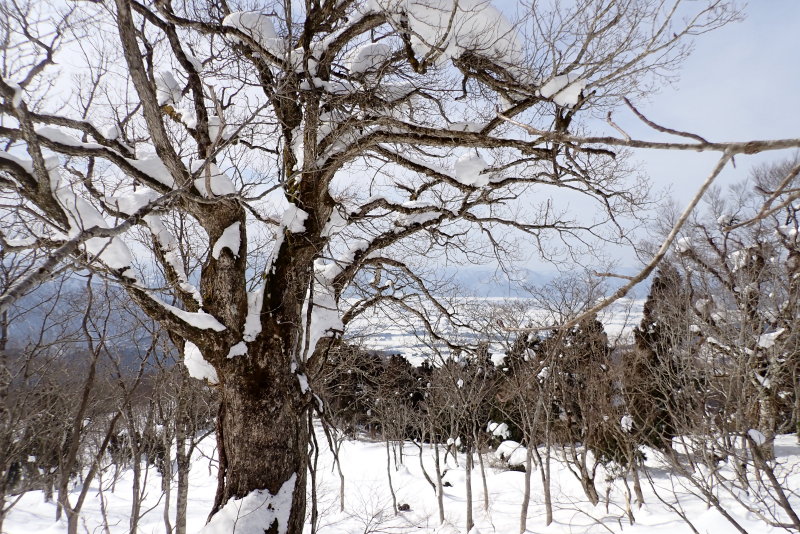 >ここは広い雪原となり、ど真ん中にミズナラの大木がシンボルのようにどっしりと鎮座している。