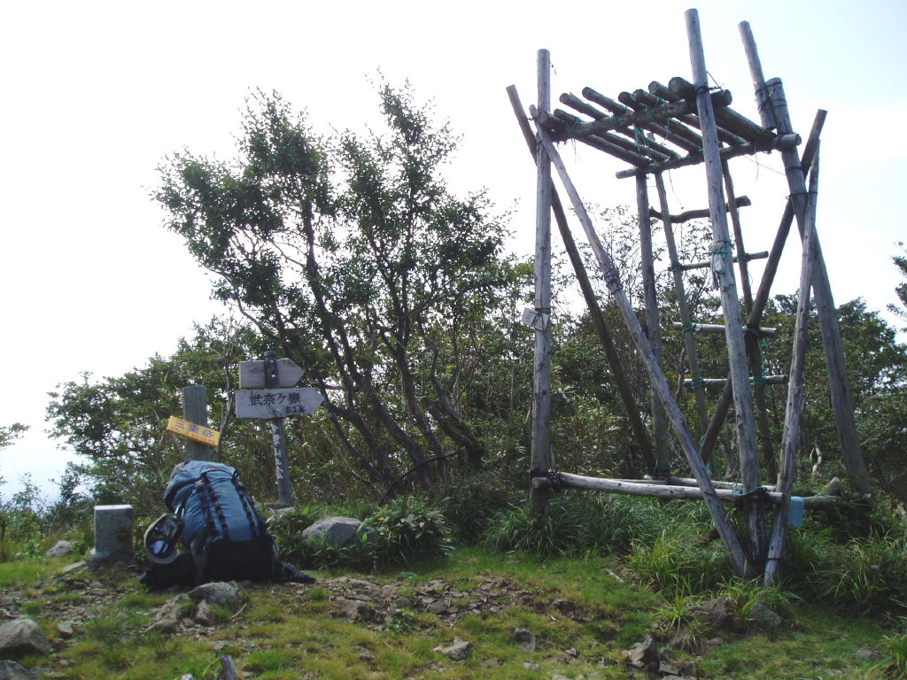 いったん下って登り返すと西峰。ここから中央分水嶺の高島トレイルルートだ。
