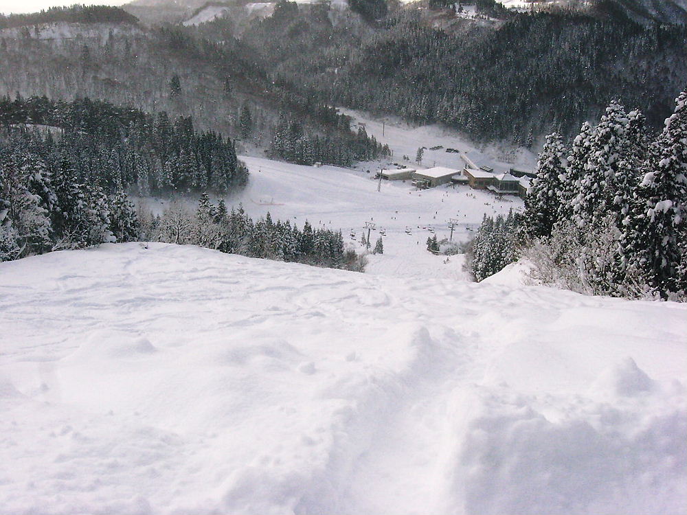 新雪はスネを越す、軽やかな滑り身体は確りと覚えてるもんだね。雪を蹴散らしながら滑り降りたよ。