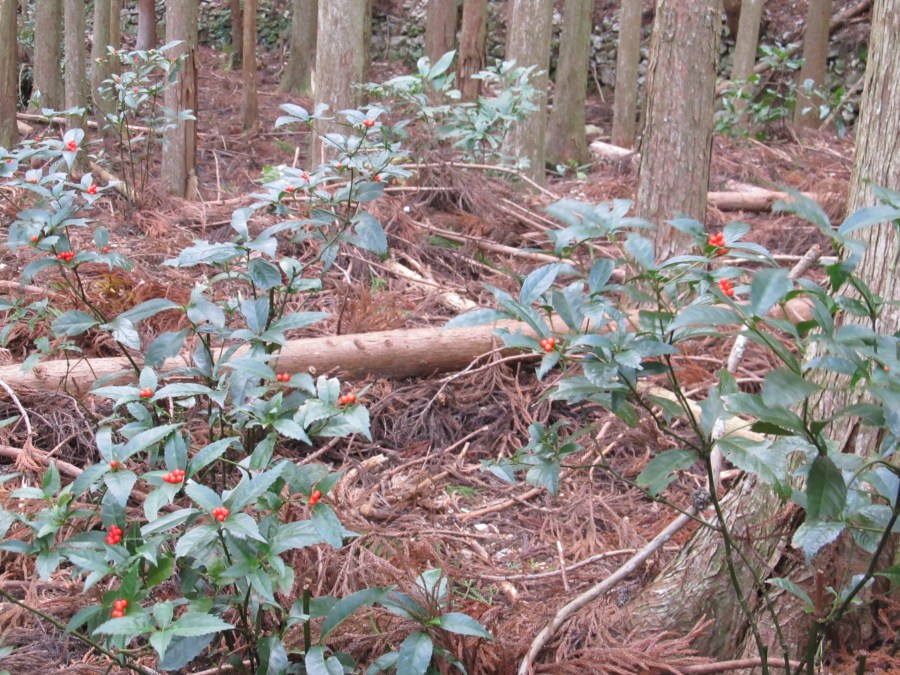 そうそうこの辺のふもとの林はセンリョウの木がいっぱいで沢山赤い実をつけてました。=TW=