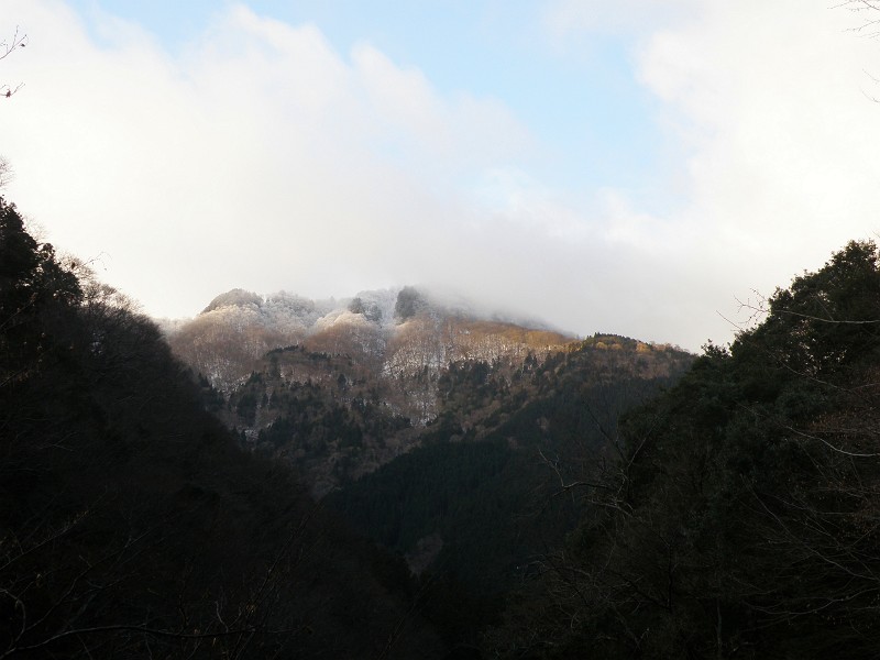 走行しながら見る三峰山も迷岳も霧氷は付いてなさそうだ。蓮ダム周回路から見る県境稜線にも樹氷は無いが、北からガスが流れ出しているのが見えた。この分なら檜塚の霧氷は大丈夫そうだと早く稜線に着ける青田に車を走らせた。