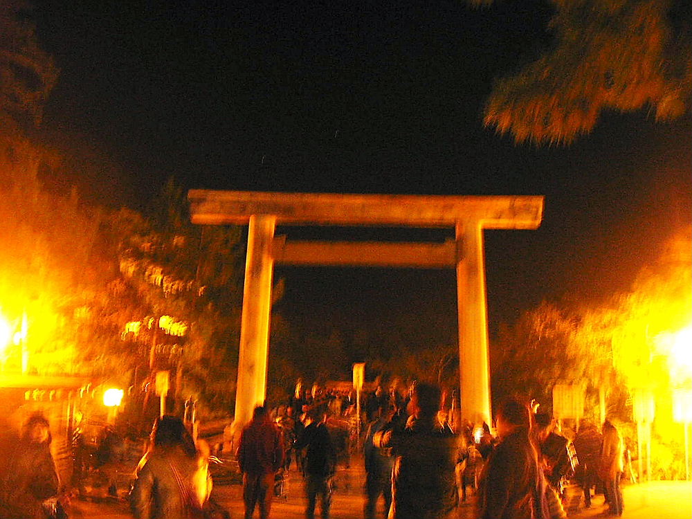 屋台は中々に繁盛してるよ、お店の美女に相手にされながら鳥居をくぐる。