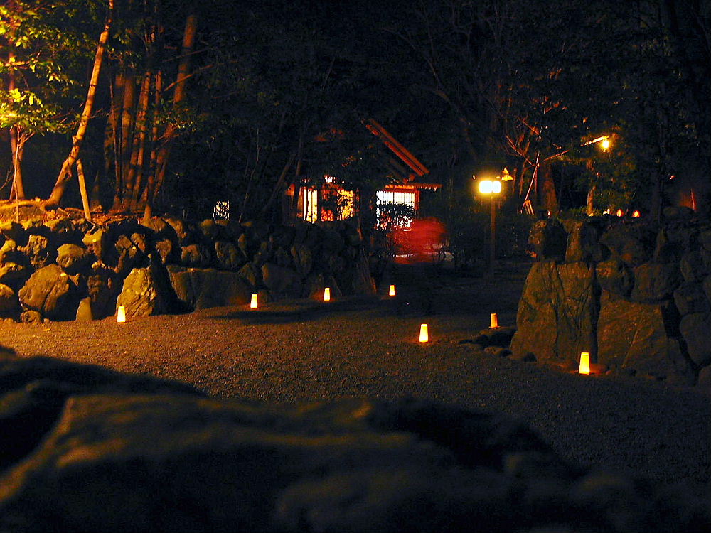 小さな神域内にも篝火が、そこの世話役の方にいろいろと聞きました。そして案内してくれました。