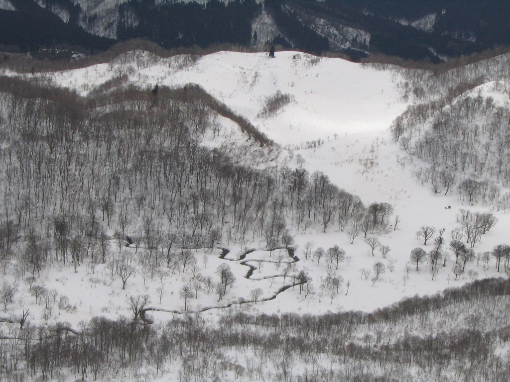 山はスッキリとした姿をみせてくれない、ぼやけてるんだ小白山、野伏ガ岳、薙刀と小雪でも舞ってる様だな。