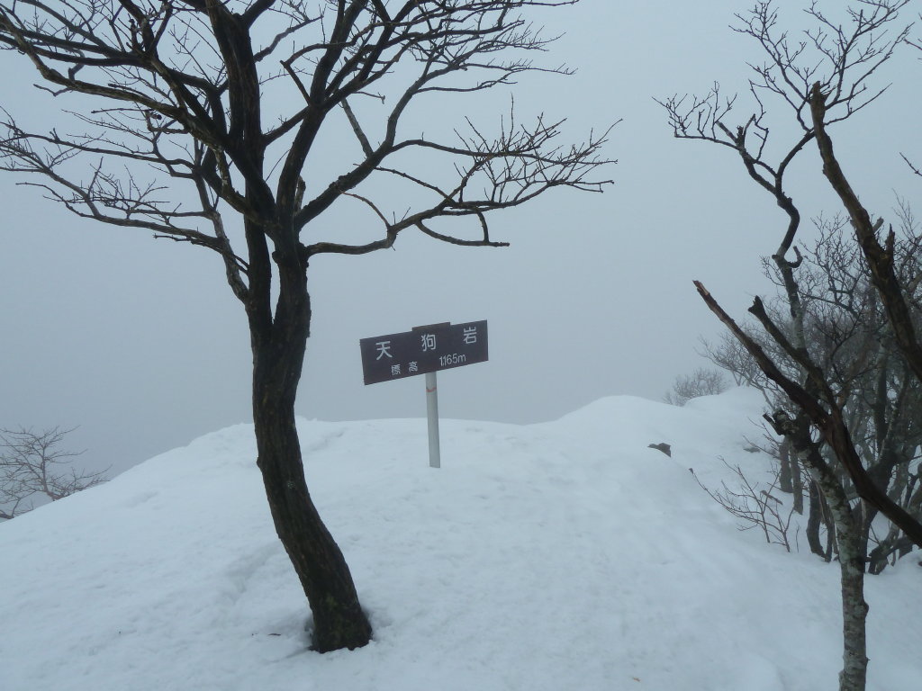 これだけ何も見えなければどこで食べても似たようなもの。天狗岩の登りにかかる少し手前にランチ場を設営した。