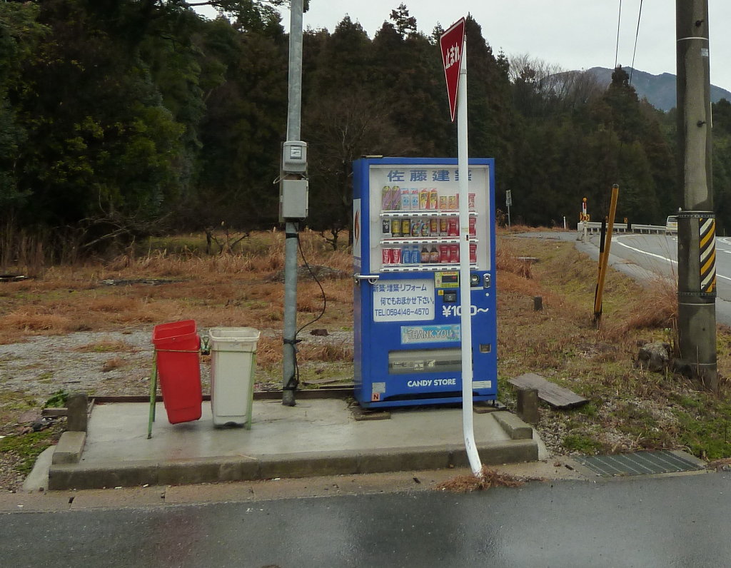 わりばしレポを参考に、国道を歩いて100円自動販売機のところで左折する。道の脇には廃屋や、山口配水池の昔の