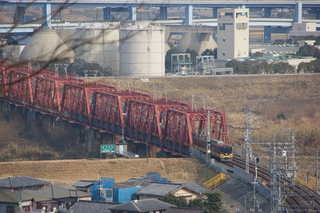 たぬちゃんって鉄男やったん?眼下に木津川に架かる鉄橋を走る京阪電車が見える。京阪電車のビデオや写真集には必ず出てくる有名な風景だ。