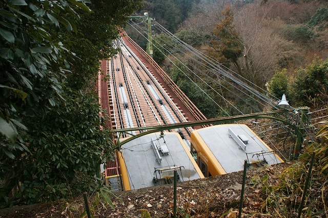 古い鉄道は河川に直角に鉄橋を渡すということを教わったと記されていたことを思い出す。ケーブルカーと京阪電車を何度か見送ってさあ出発。![]()