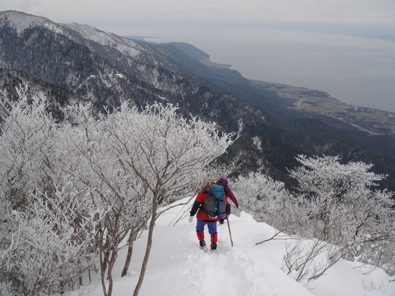 下に見えるのは琵琶湖ですね。結構雪が多いのですね。