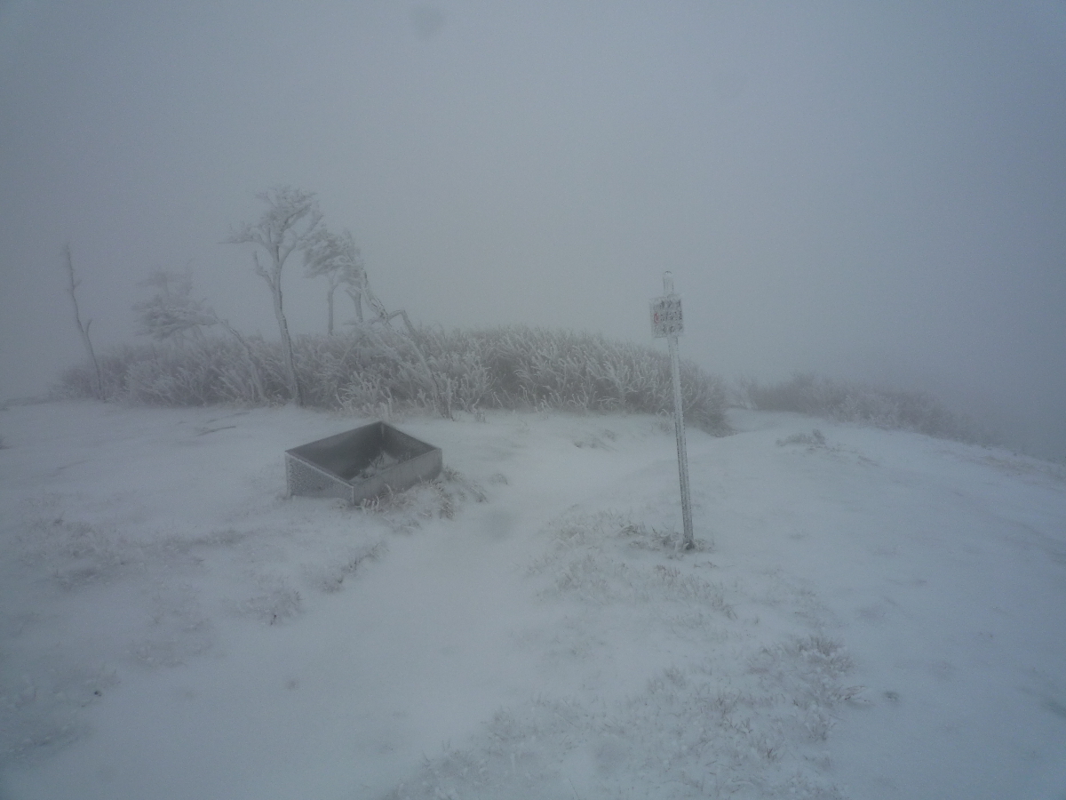 よく先に進もうと思いましたね。そのおかげで、青空に霧氷が見れたのですが(^^)。