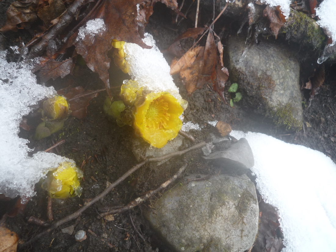 途中、期待していなかった福寿草を見つける。今年初めて見た福寿草だ。