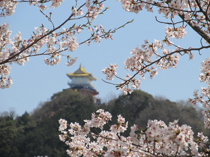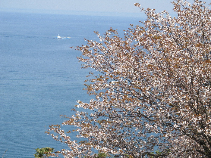 展望台には神社と東屋が有り伊勢湾が展望出来る、桜も満開で沢山人が上がって来ている、こんなに賑わっていたのははじめてだ。