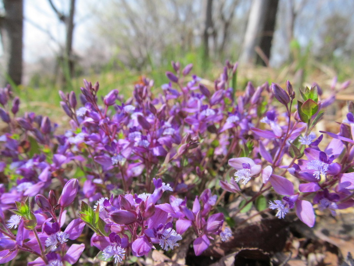 写真を撮りながら上がっていくと何組かが花見をしていた、足元にはスミレなどが咲いているが目立つのがヒメハギだ、大きな株になって沢山の花をさかせている、こんな花付きの多いのは見た事が無いのだ。
