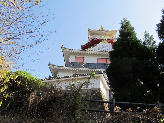 帰りは山腹道をたどり元の道に出て、公園から離れ、城に向かう稜線に入ってみた。10分位で城の裏手の法面の上に出る、この城も観光客に公開してるはずなんだが人影は全くないようだ。そのまま降りれば進入できそうだ。回り込んで降りてみる、城の真下に来た手摺りを乗り越えれば入れるのだが、不法侵入で捕らえられれば打ち首にでもされそうな所なので止めておいた。しばらくみていたらお客さんもぽつぽつ、でも入場者少ないんだよねここ。