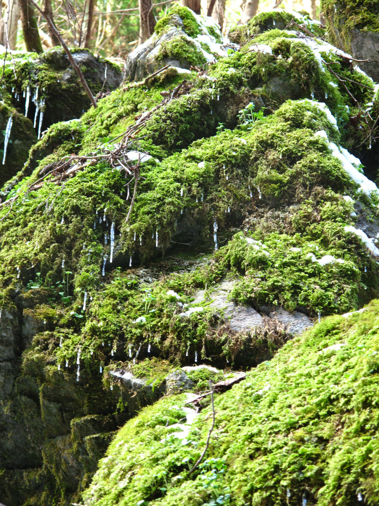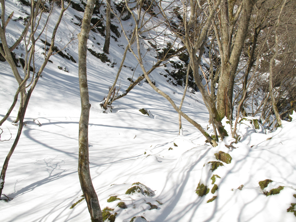 左手の斜面は日が当たるようで地面も見えていました。