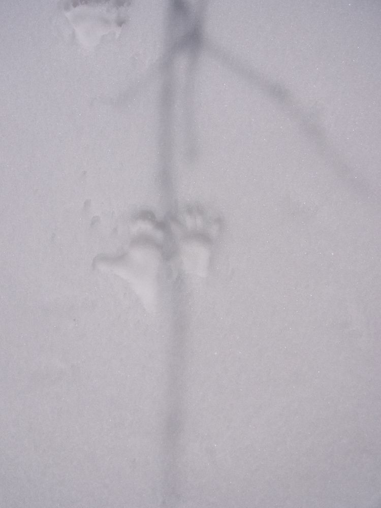 なだらかなこの尾根もブナが多くいい尾根です。そしてこの辺りは野生動物の気配が色濃く、5㎝程の新雪上には昨夜から今朝に付いたと思われる熊の足跡が一筋と、猿の群れが横断した足跡がくっきりと残っていました。