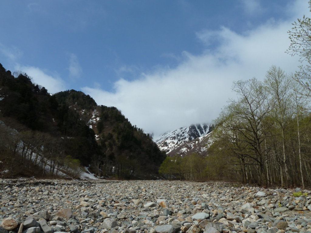 着いた。その手前から河原に雪が残り始めていたが、ここへ来て雪の面積の方が多くなった。