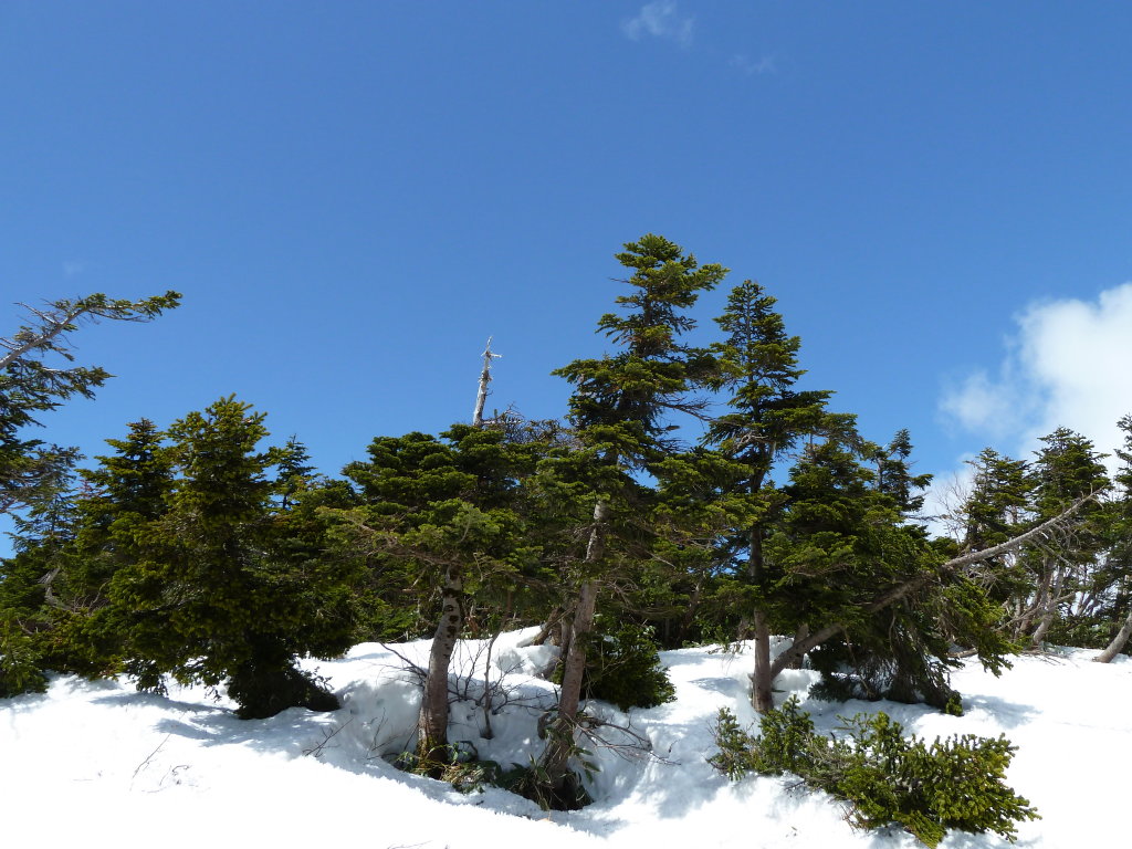 わずかな登りで南白山の頂上に到達した。オオシラビソの並ぶ平凡な山頂だが、ここへ至る道程を思えば感慨深い。