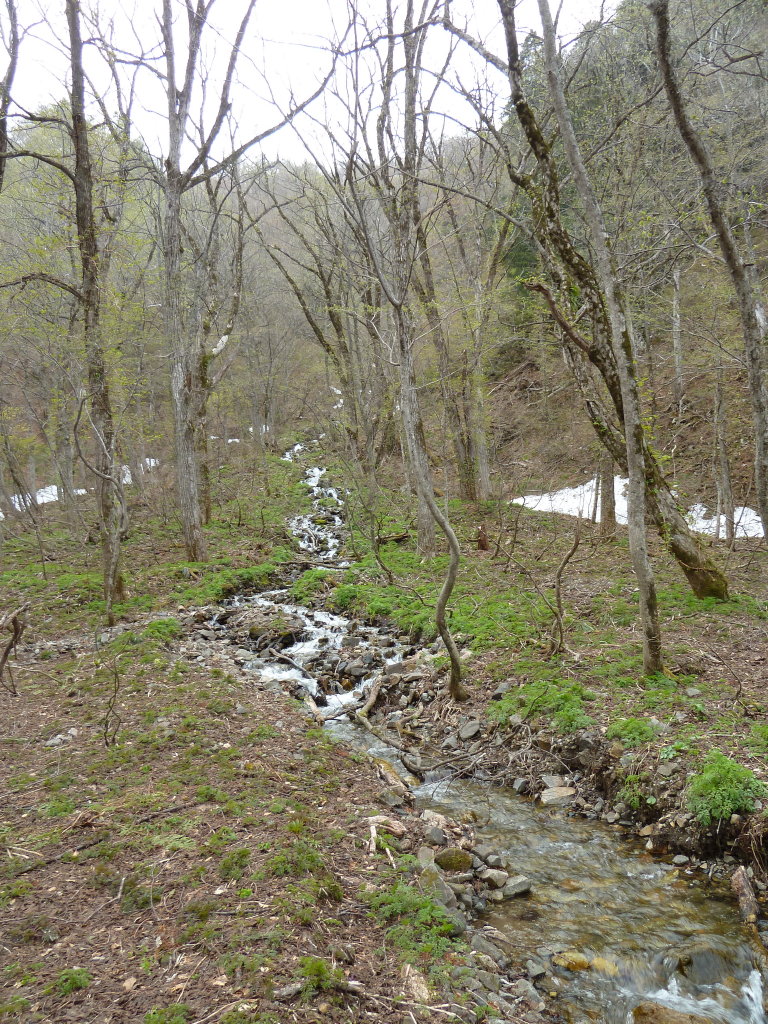 Ca1750mの二俣を左に取る。谷の巾は相変わらず広く、20~30mはあるだろうか。