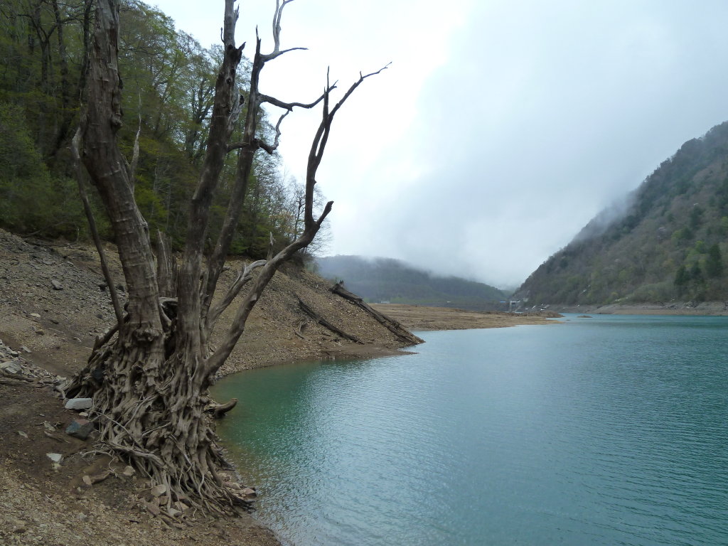 がった。湖畔には枯れた巨木のオブジェが並んで面白い。
