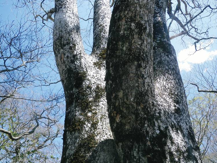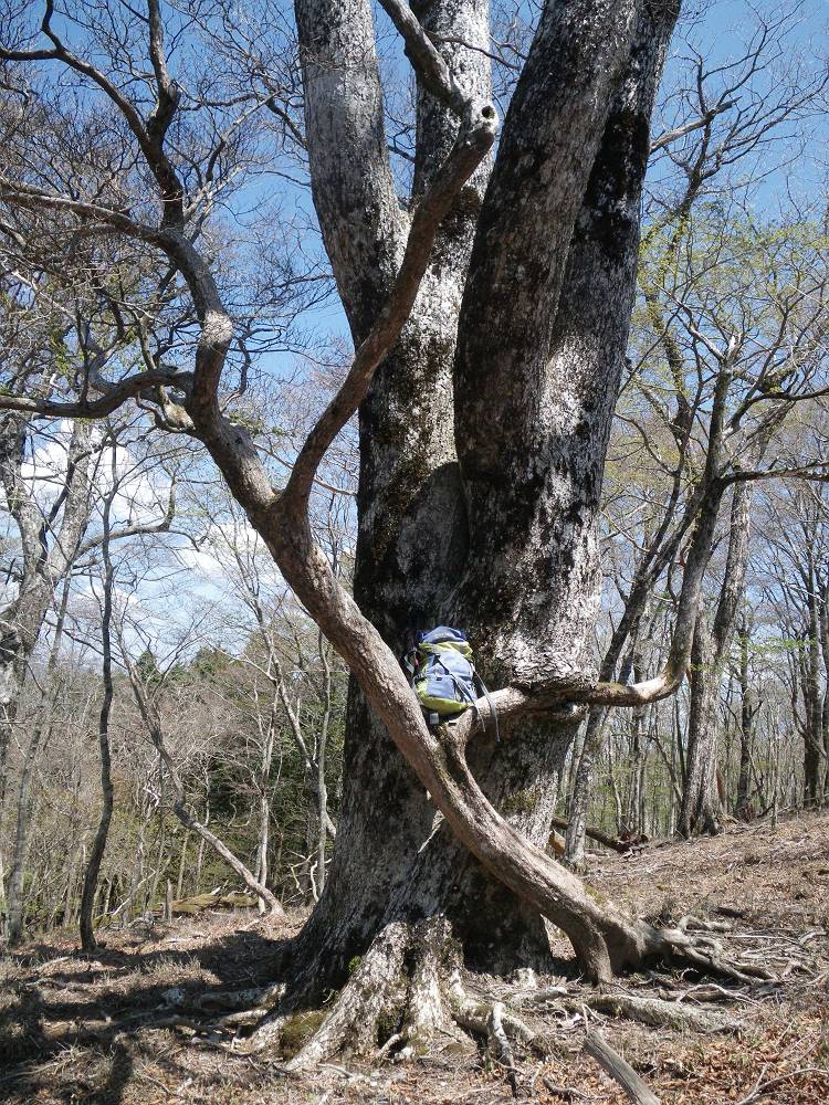 そうこうするうち、巨木の森に吸い込まれた。予想もしなかったブナの原生林に心が躍る。ことに1363ピークに至るブナ林は白眉だ。一見して大人三人抱えほどの大木もある。