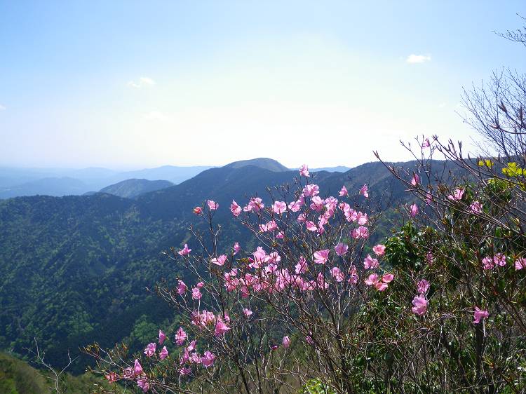 あの辺りでは、アカヤシオの岩岳山にシロヤシオの京丸山だと思っていましたが、アカヤシオもありましたか。花を確認されたのか木だけを確認されたのか少しよくわかりませんでしたが、シロヤシオのある森ならアカヤシオもあるのでしょうね。また、京丸山から見た岩岳山のアカヤシオはどうでしたか。今年は少し遅れていますか。