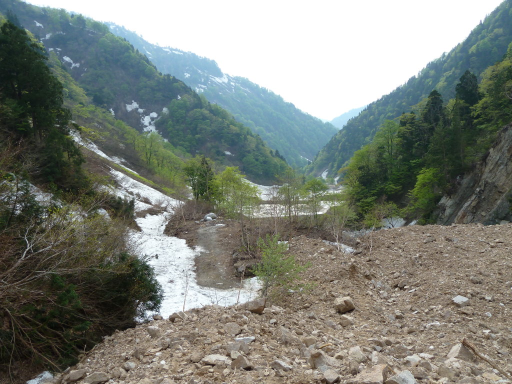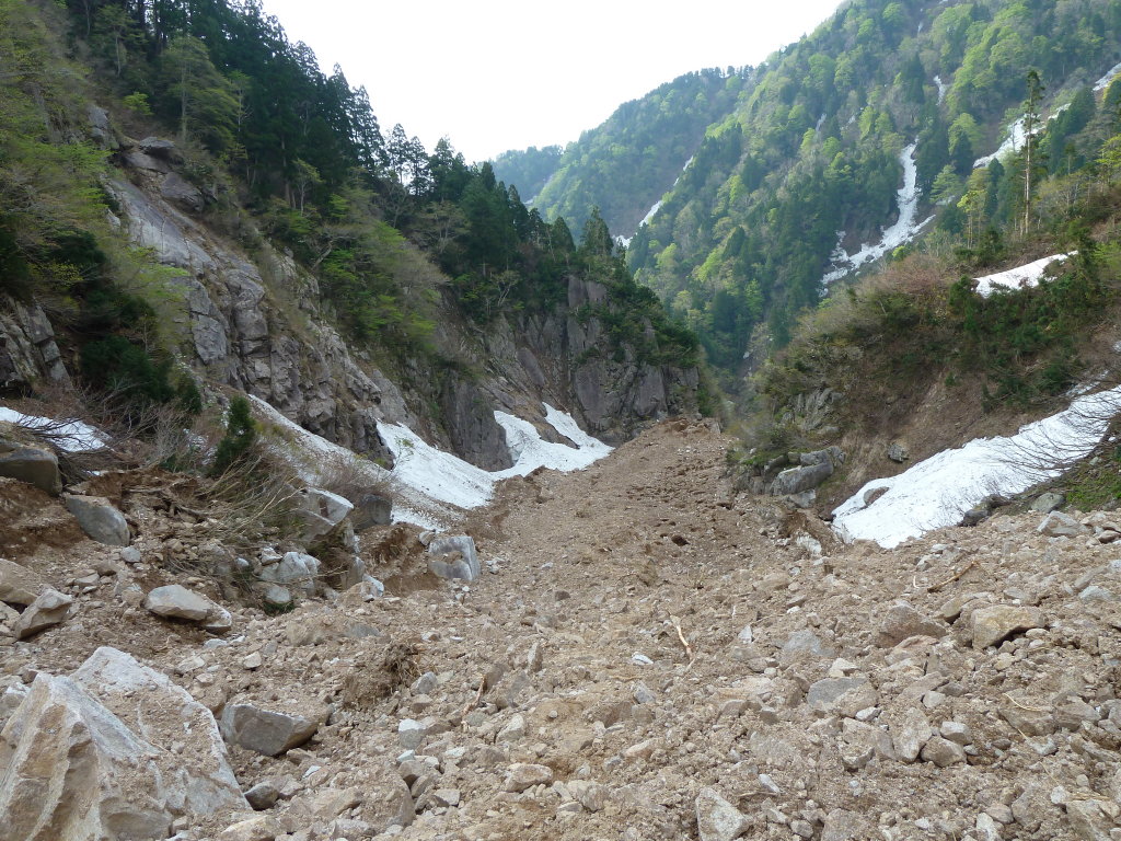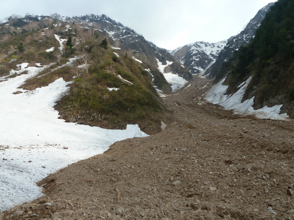 雪渓歩きを楽しみに来ているのに残念ですね画像を拝見しましたが凄い土石流ですね