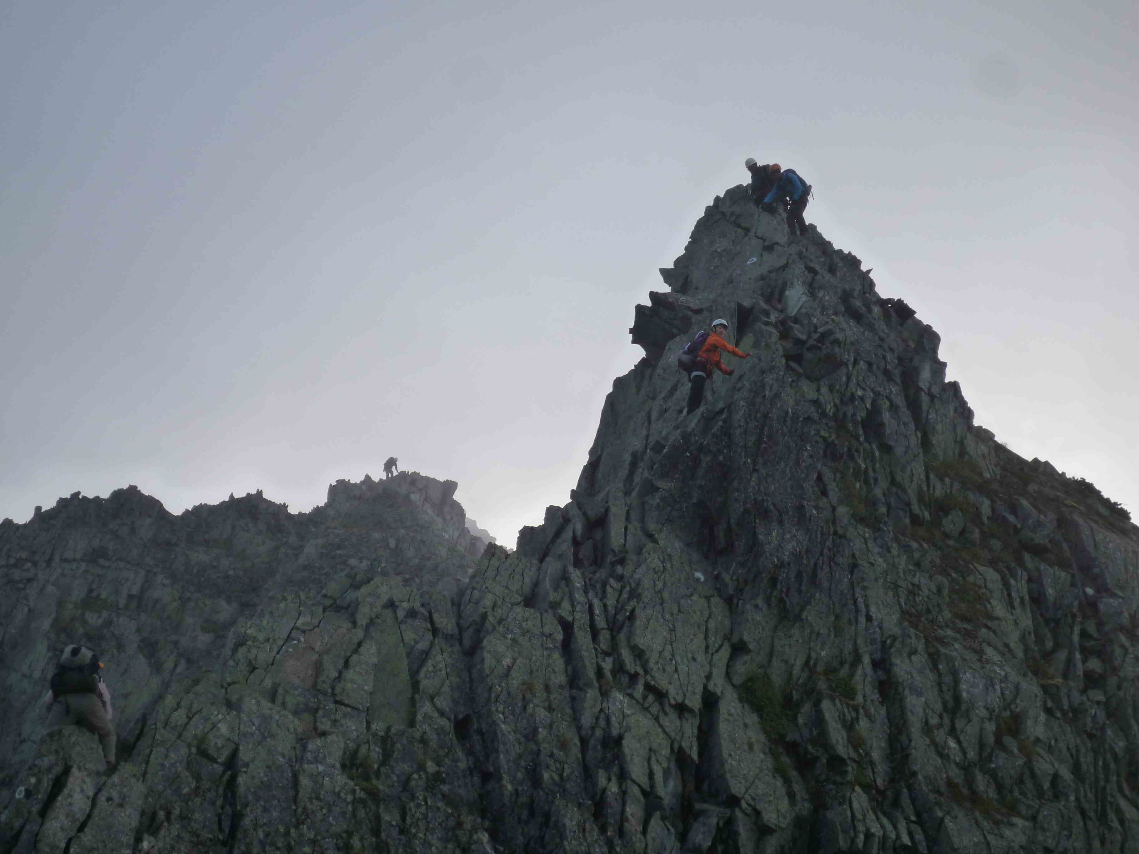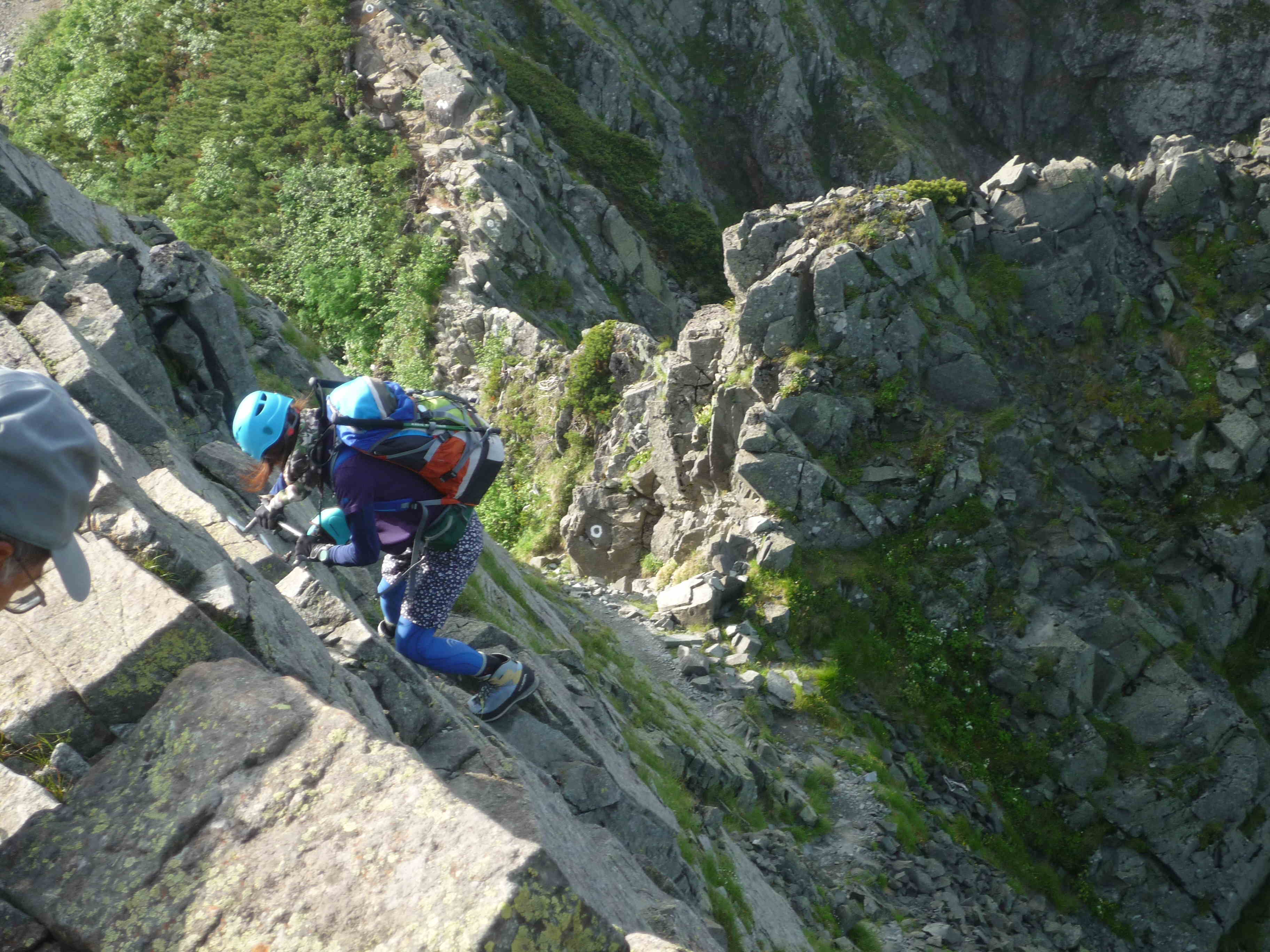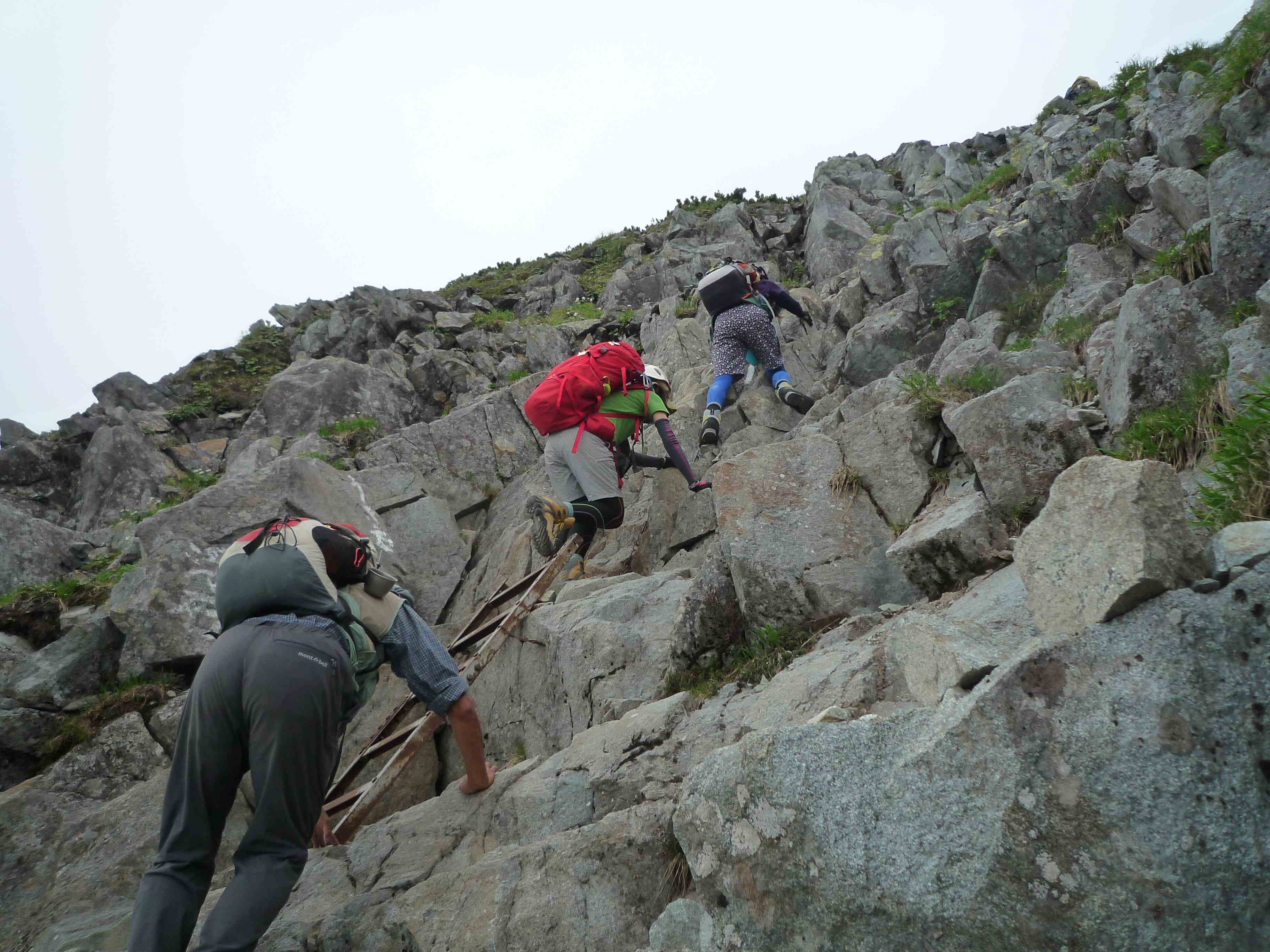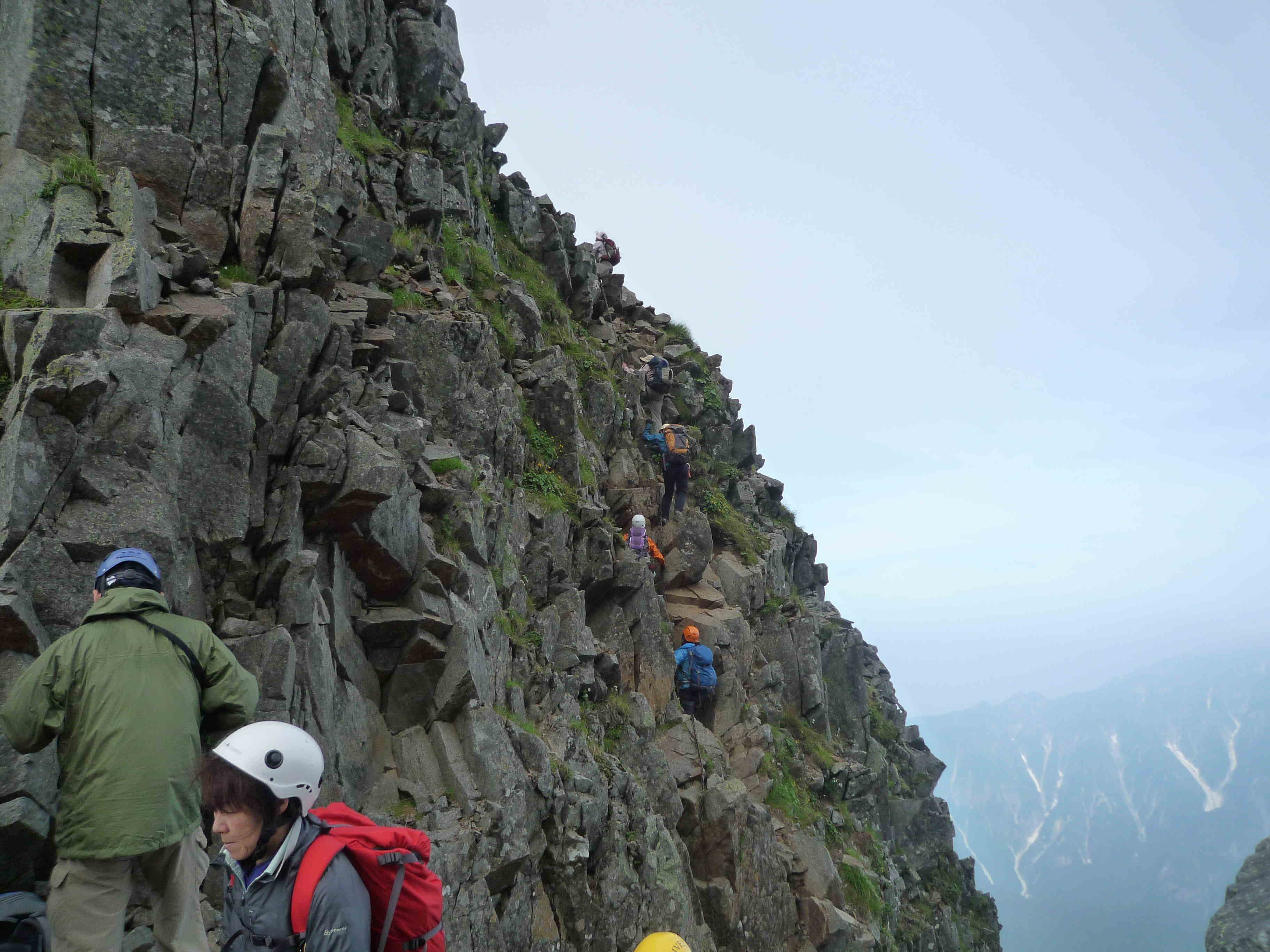 同行の夫婦は,こんな所に来ようと思うだけあって,予想していたよりも大丈夫そうだ.奥さんの方は岩場が大好きだそうで,動きを見ていても大丈夫そうだが.ご主人の方は奥さんについてきただけという感じで心もとない.落ちるとすれはご主人の方に違いないと思ってしまう.