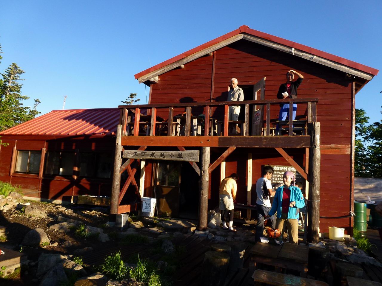 辺りも暗くなりかけて来たがそれでも山小屋になかなか着かず、まだかまだかと思いながら登っているとやっと山小屋に到着した。小屋の入口で何故か宿の主人が私を待っていてくれたようだった。小屋に入ると食事は私の分だけが残されていて一人食堂に通された。