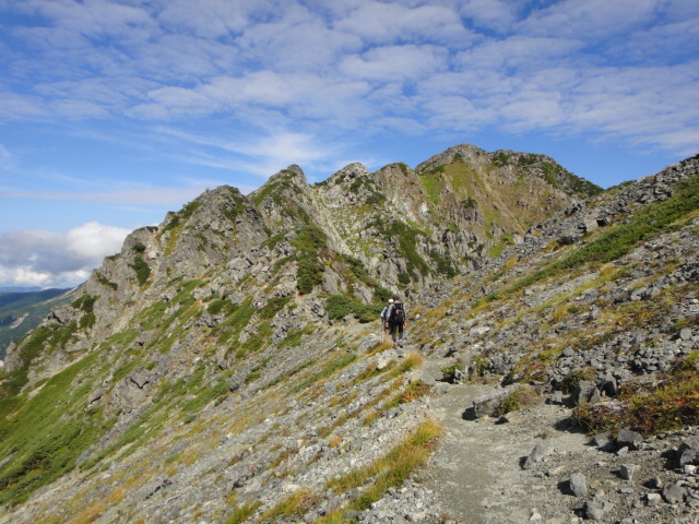 途中、小ピークを越え切り立った稜線を通過すると北薬師岳に到着する。