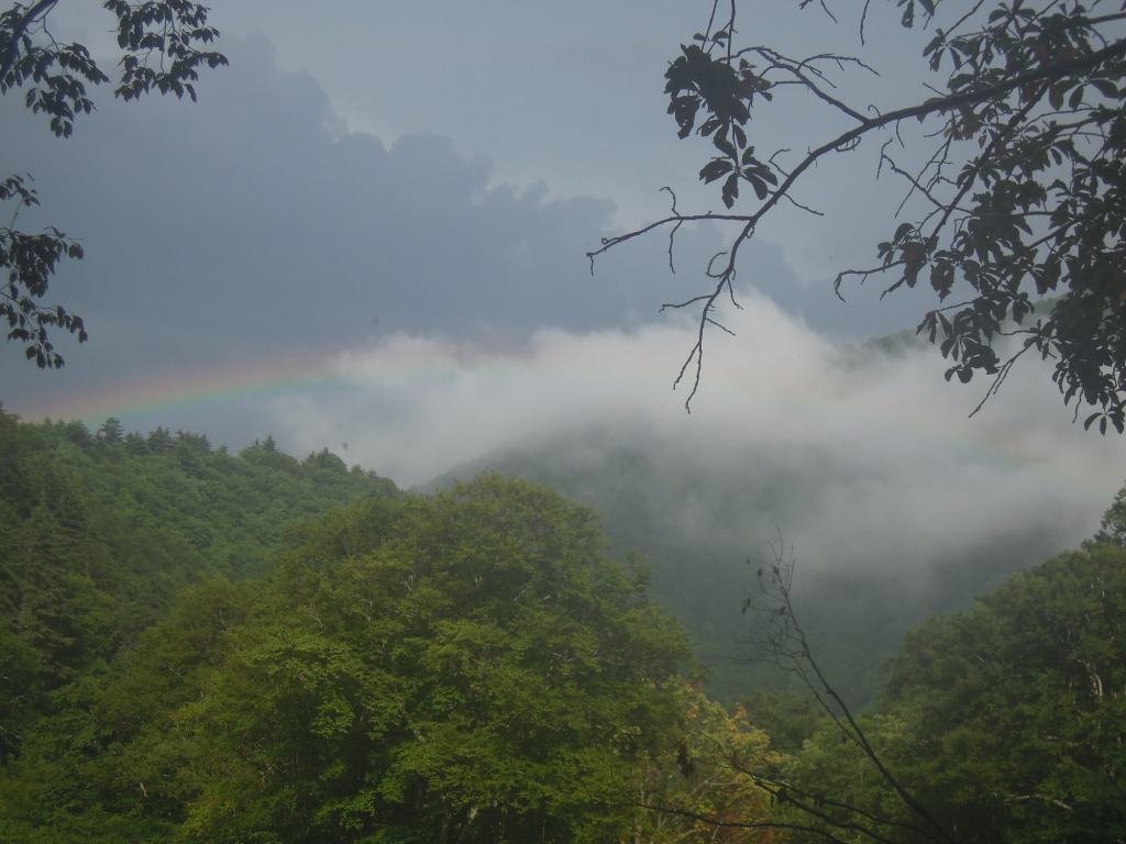 めでながら元来た道を戻ると最後はきれいな虹が迎えてくれた。