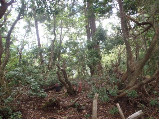 どんなヤブ山でも必ずプレートを付ける人がいるものですが、何もないのは珍しいですね。登りきった最高点は小さい木が生い茂った場所でここも標識もなにもない場所だった。