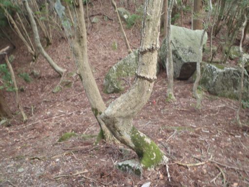 どんな低山でもロープを持っていることは大事ですね。ここの下りは少々急であるのは承知の上であったが細引きを持っていたので急な場所はこのロープを木に掛けて懸垂下降の要領で降りて行った。