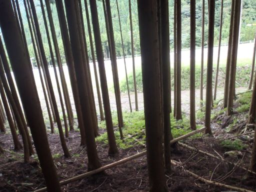 国道の近くまで行くと植林の先に道路が見えた。