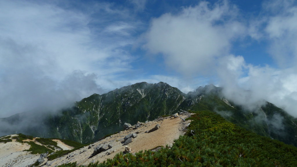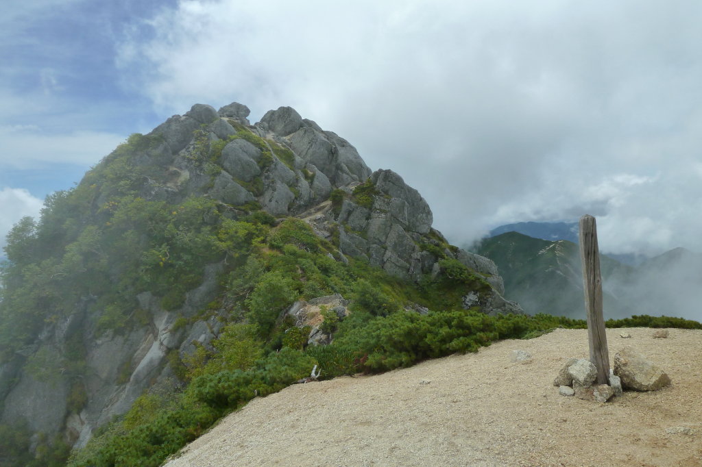 そこで休んでいると、南駒ヶ岳方面からの単独者が素通りして行くのが見えた。彼も逆回り周回組のひとりだろう。