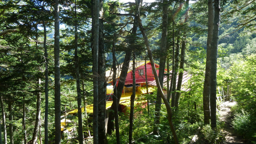 この登山道は全体的に鬱蒼とした針葉樹林の中を行く。花も展望もなく、ただひたすら高度を稼ぐだけの面白みのない