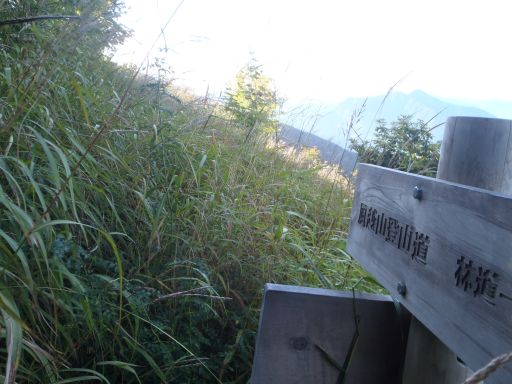 さらに先に進むと登り坂の尾根の途中に中央アルプスの展望という看板のある場所に着く。