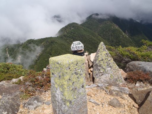 残念ながら三ノ沢岳は半分が雲に覆われて展望はイマイチだったが、雲がなければ中央アルプスが一望できたに違いない。