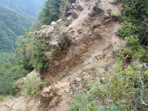 そこを通過すると又南側が崩壊したガレ場の尾根に差し掛かり、そこを慎重に通過した。