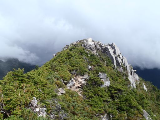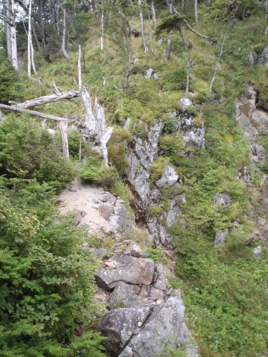 そこを少し下って、コメツガの生い茂る岩混じりの急な尾根を登って行くがここの登りが意外に長く一番きつかった。