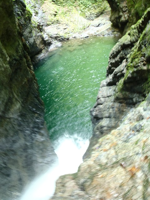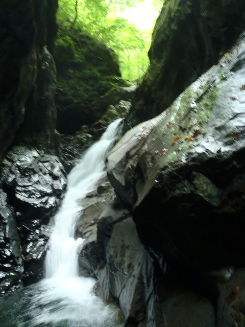 暗くって写真もボケる(^^;、極度に両岸迫る淵。
