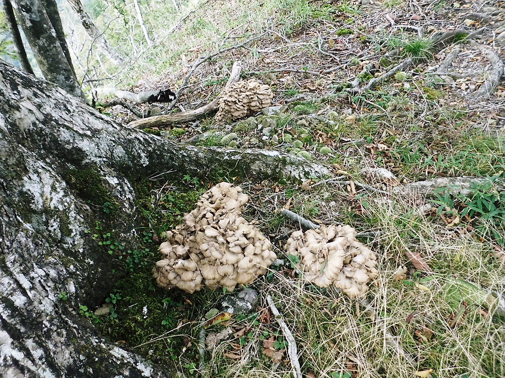 > [q_yab]帰りはチンタラと、見つけたマイタケを頂きます。こんな風に生えるんだね。
