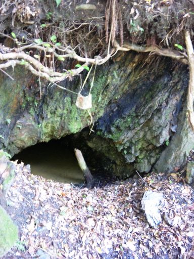 前回はここの坑口を見逃したので良く見ながら右手に目をやるとはっきりした坑口が現れた。入口には危険入るなという注意書きがぶら下がっていた。