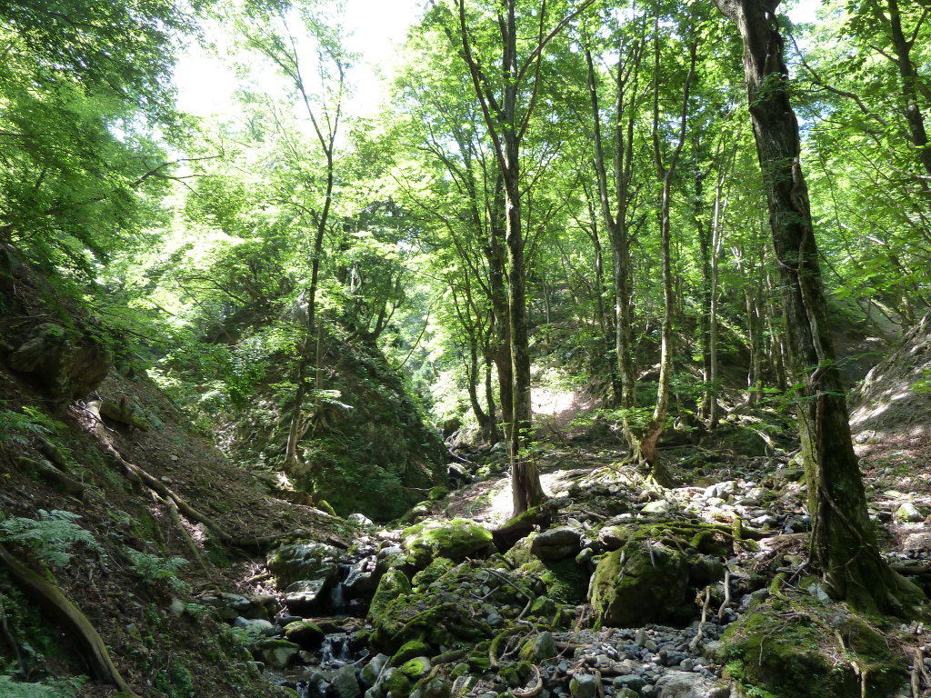 谷の中でも一二を争う美しさだろう。両岸の尾根上にはブナ林が広がる。