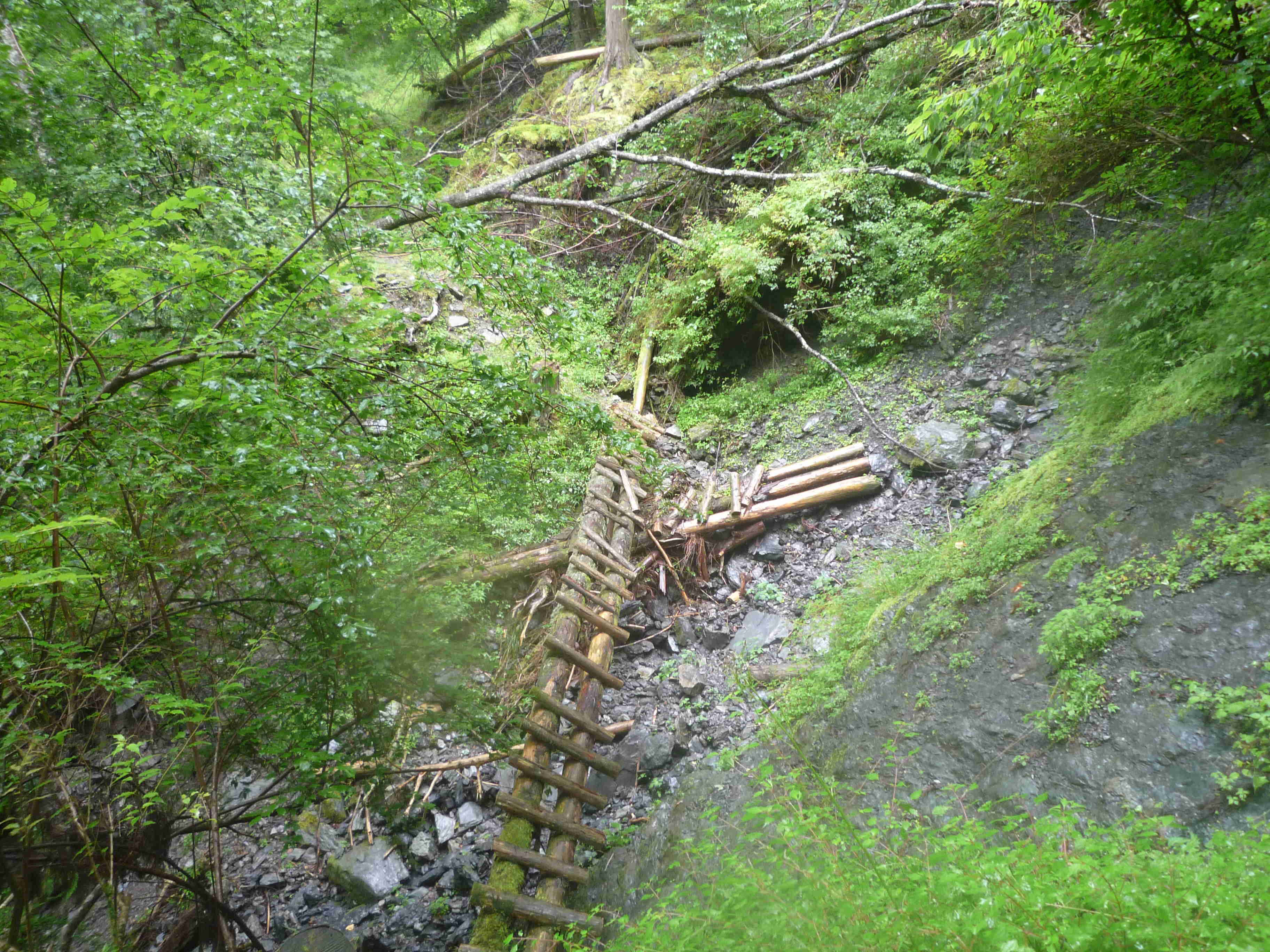 そう。私の時は、流木が上に飛び出していて、それにロープを回して上がりました。