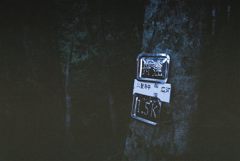 で、小屋の前の表示に従って登山路へ入る。シラビソかコメツガのような針葉樹の樹林帯の中の苔むした石のゴロゴロ道を少し行くと、金属板に大聖寺平まで「6km」の表示。ここからいきなり急斜面直登と倒木だらけのトラバースの繰り返しが始まる。午前中の渡渉に体力の大半を使い果たしたのか、息は上がるが足が上がらない。「水場」(川)でポリタンとペットボトルを満タンにしたのを後悔したくなるが、捨てるわけにもいかないし…。(>_<)