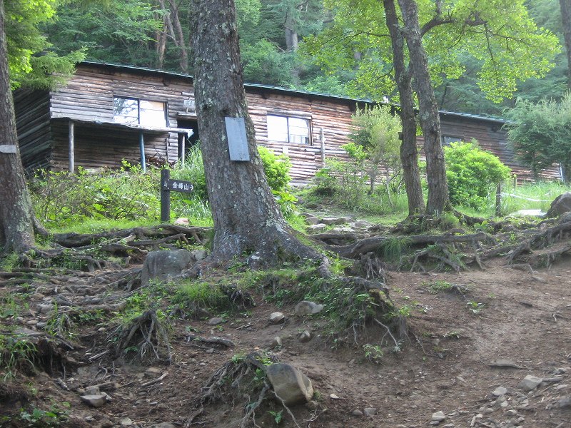 しばらく金峰山の山頂でくつろいだが、次第にガスもかかってきたため、下山することにした。山頂直下に金峰山小屋があるので、ここに立ち寄ってみることにしした。15分ほど