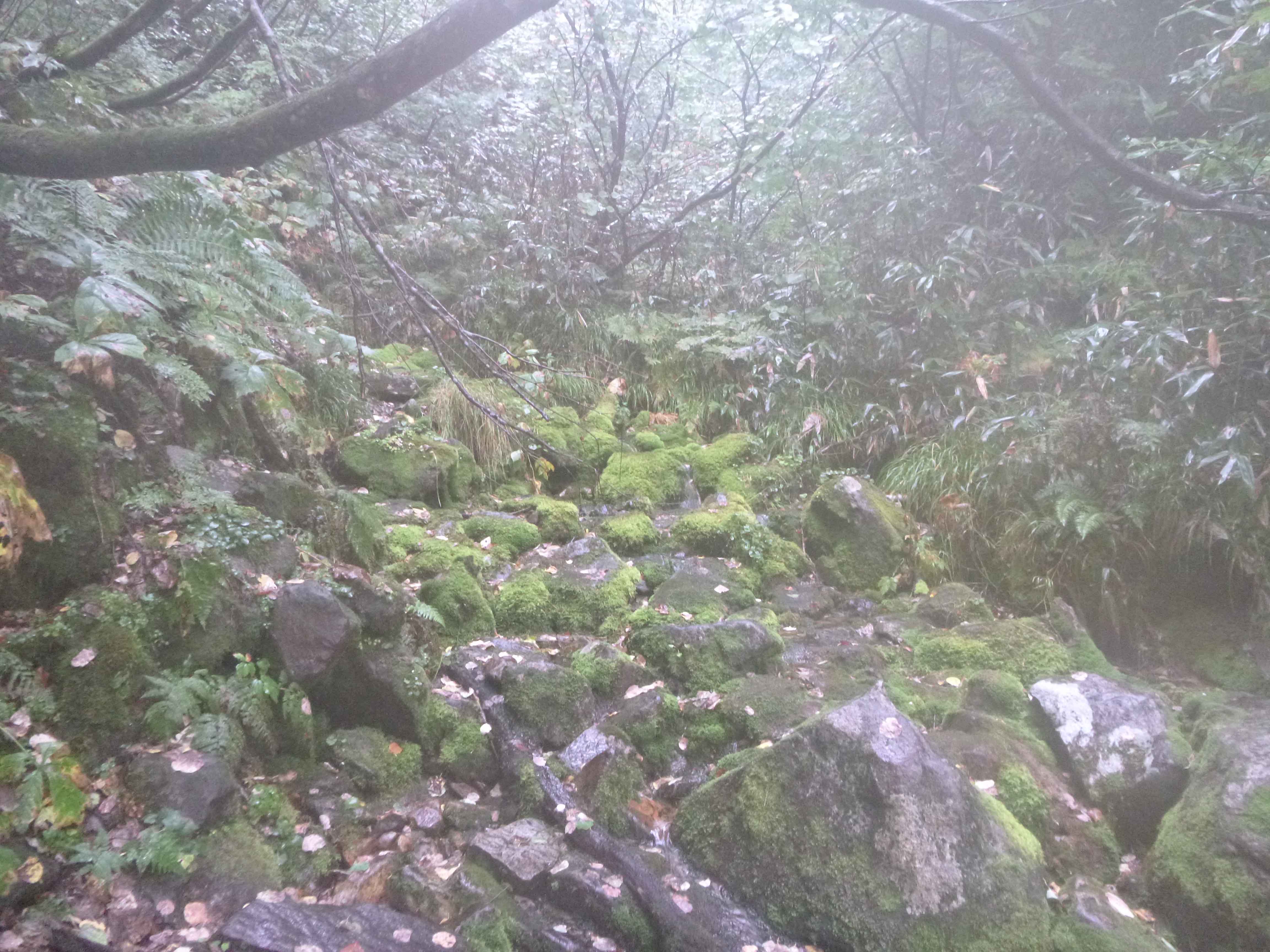 朝4時前に,テントをたたく雨の音で目が覚める.グランドシートとテントの床の間に雨水が入り込まないように手当てをしてから,また寝袋に潜り込む.天気予報では今日1日雨が続きそう.明日晴れるという保証もないので,今回はこのまま下山することにする.