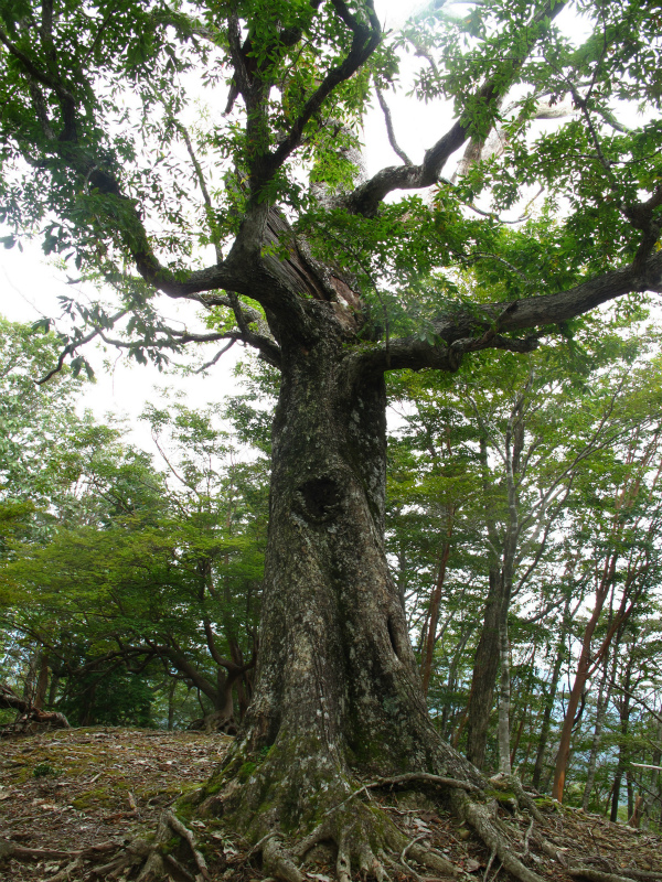 野江股ノ頭により分岐から下る。ナンノキ平は、初め日立のまわしものかと思ったが、そうでもないらしい。ナンノキ大王と呼ばれる大木が鎮座している地だが、この名前は昔からの呼び名なのか?野江股の頭には寄らずでしたか。1206mピークの近辺は実にいい雰囲気ですよね。